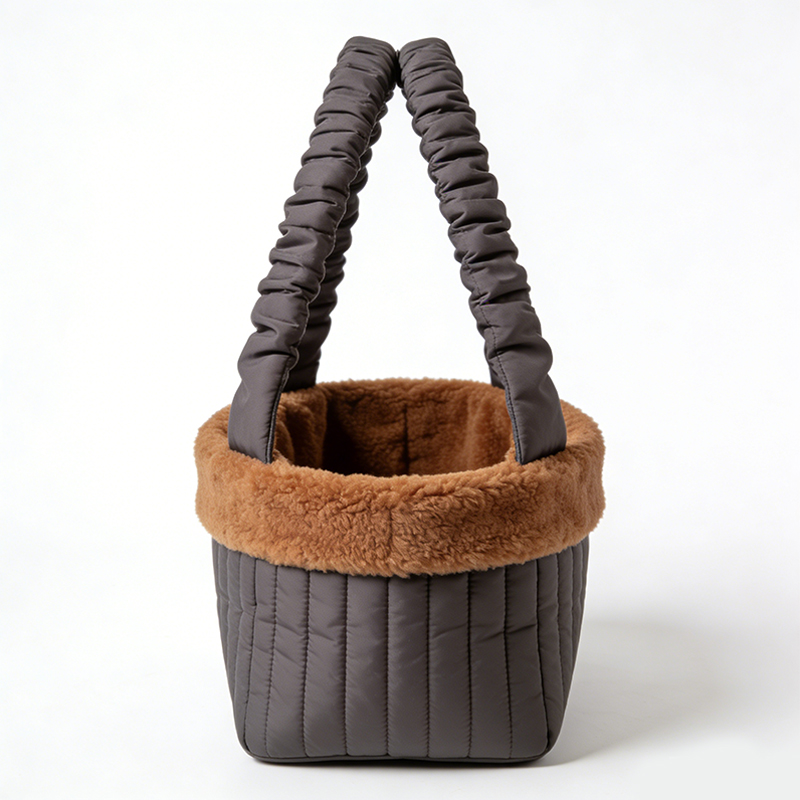 Pet Plush-trim Vertical-quilted Purse Carrier