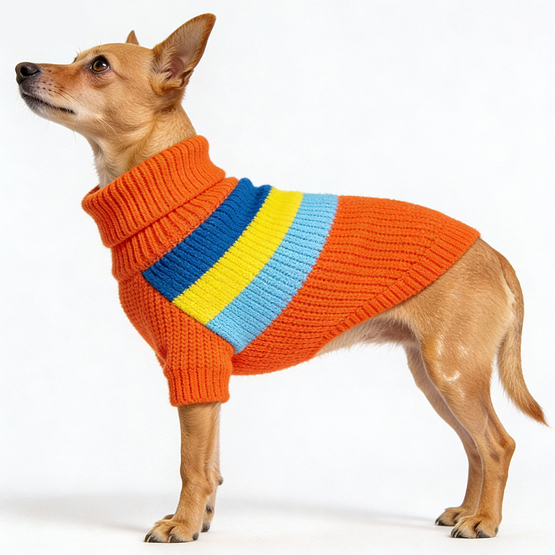 Rainbow Striped Turtleneck Pet Sweater