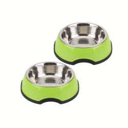 • A set of two stainless steel pet food bowls, suitable for puppies, adult dogs, cats, or kittens.