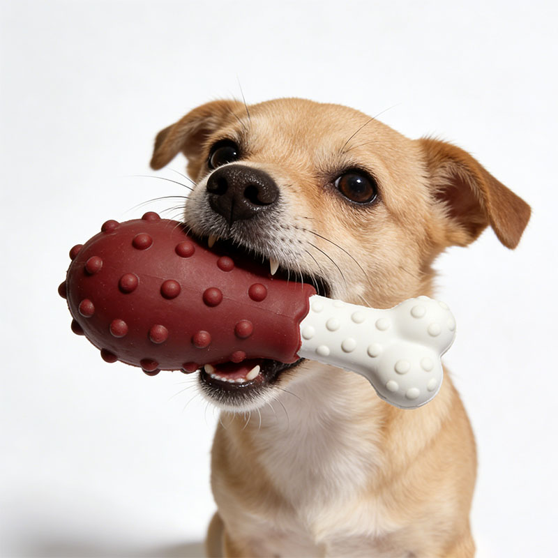 Realistic Design: A lifelike chicken leg shape with a red “flesh” body and white “bone,” covered in raised dots to closely replicate the texture of real food, satisfying a dog’s natural craving for meat.