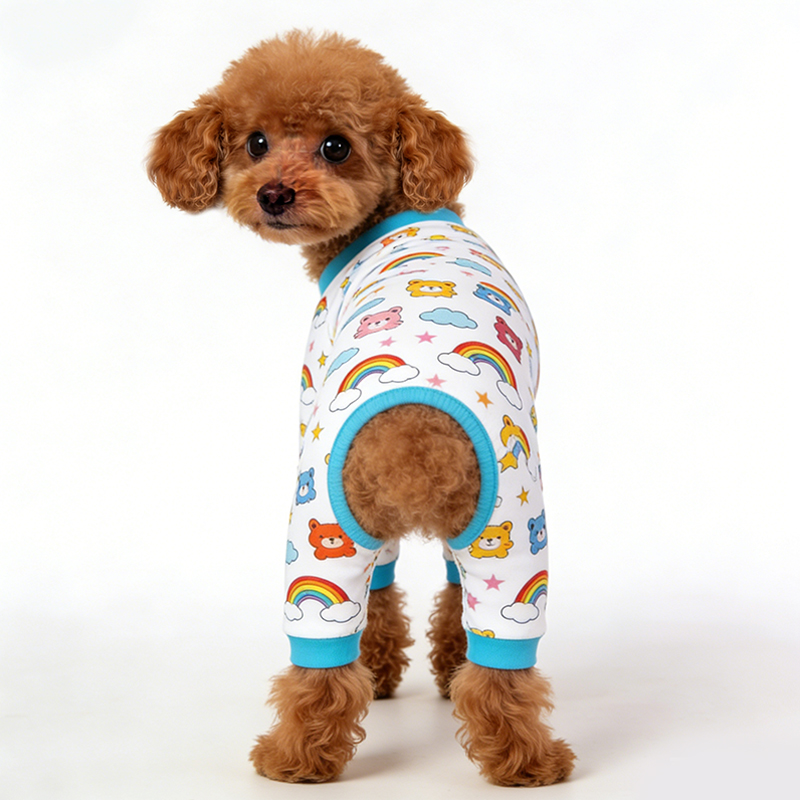 The comfortable pajama design ensures your pet feels relaxed and comfortable. Perfect for bedtime, relaxation, or indoor wear. The dog pajamas gently wrap around your pet and help prevent hair from falling onto furniture or bedding.