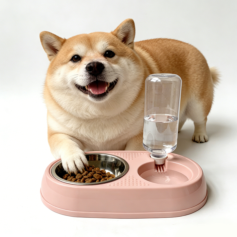 2-in-1 cat food and water bowl set. Shatterproof, pressure-resistant, and easy to clean.