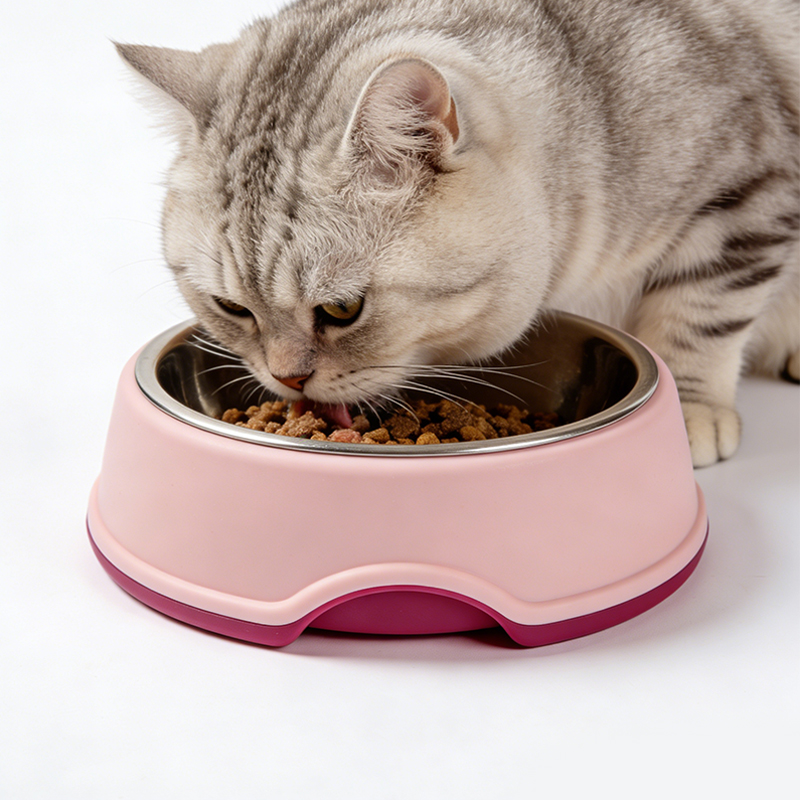 • A set of two stainless steel pet food bowls, suitable for puppies, adult dogs, cats, or kittens.