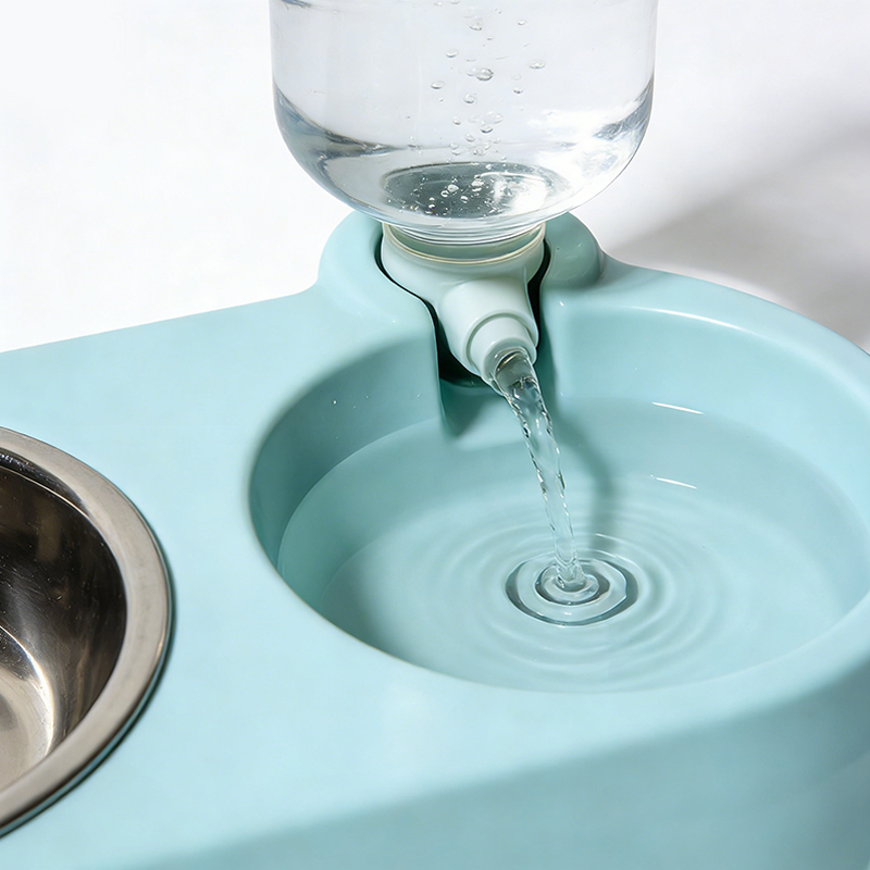 Assembly Steps: First, insert the water bowl divider into the water bowl slot. Then, fill the water bottle with water and tighten the cap. Finally, invert the water bottle and insert it into the base; the water will automatically flow into the water bowl.