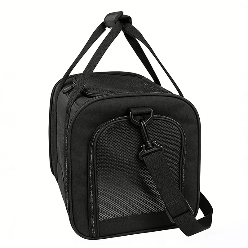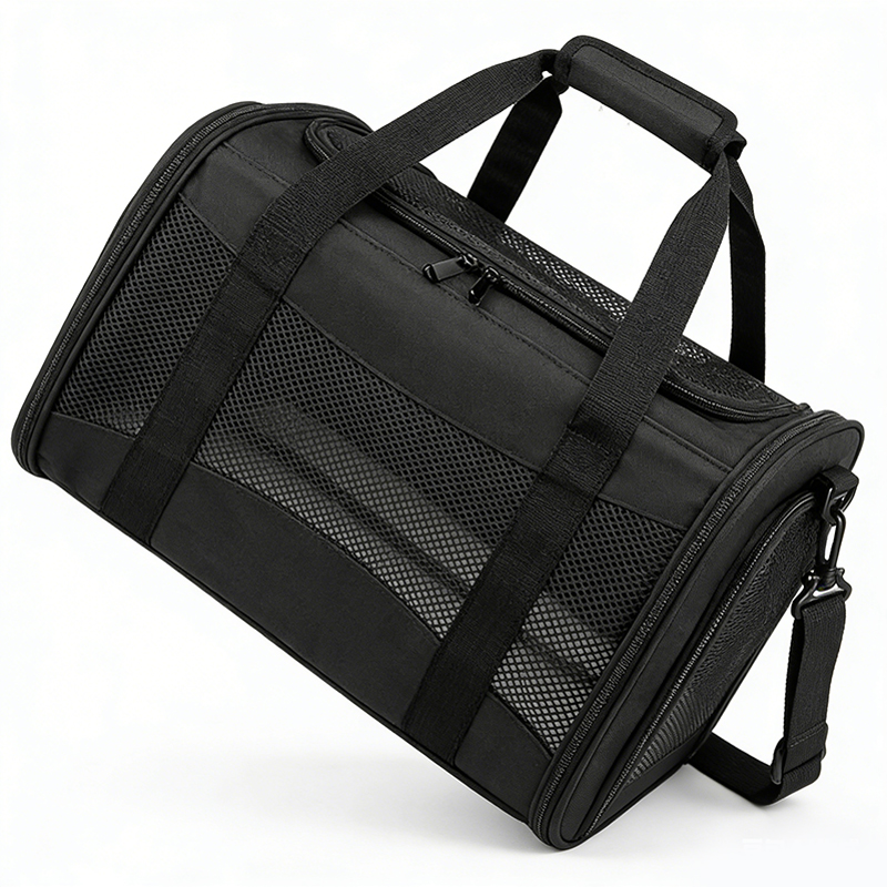 This soft-sided carrier is made of durable and lightweight polyester fabric. The four-sided mesh design provides a safe and comfortable travel environment for your pet and allows you to easily check on them.