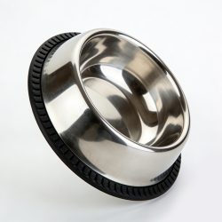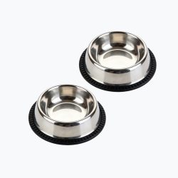 • A set of two stainless steel pet food bowls, suitable for puppies, adult dogs, cats, or kittens.
