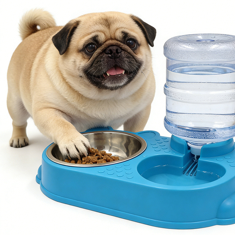 Assembly Steps: First, insert the water bowl divider into the water bowl slot. Then, fill the water bottle with water and tighten the cap. Finally, invert the water bottle and insert it into the base; the water will automatically flow into the water bowl.