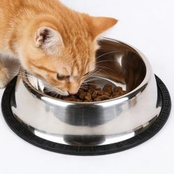 • A set of two stainless steel pet food bowls, suitable for puppies, adult dogs, cats, or kittens.