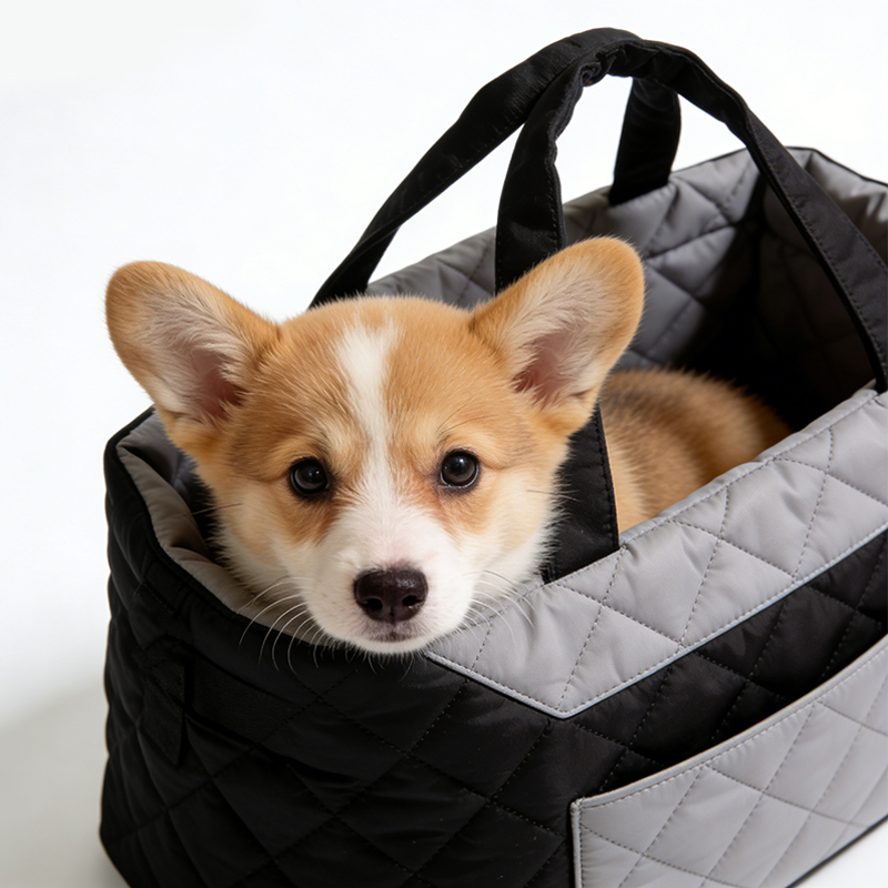 This pet carrier features a sturdy, padded base to ensure your pet’s comfort and safety during travel. Its convenient design, complete with a comfortable handle, makes it easy to carry, combining luxury and practicality, making it ideal for puppies and small pets.