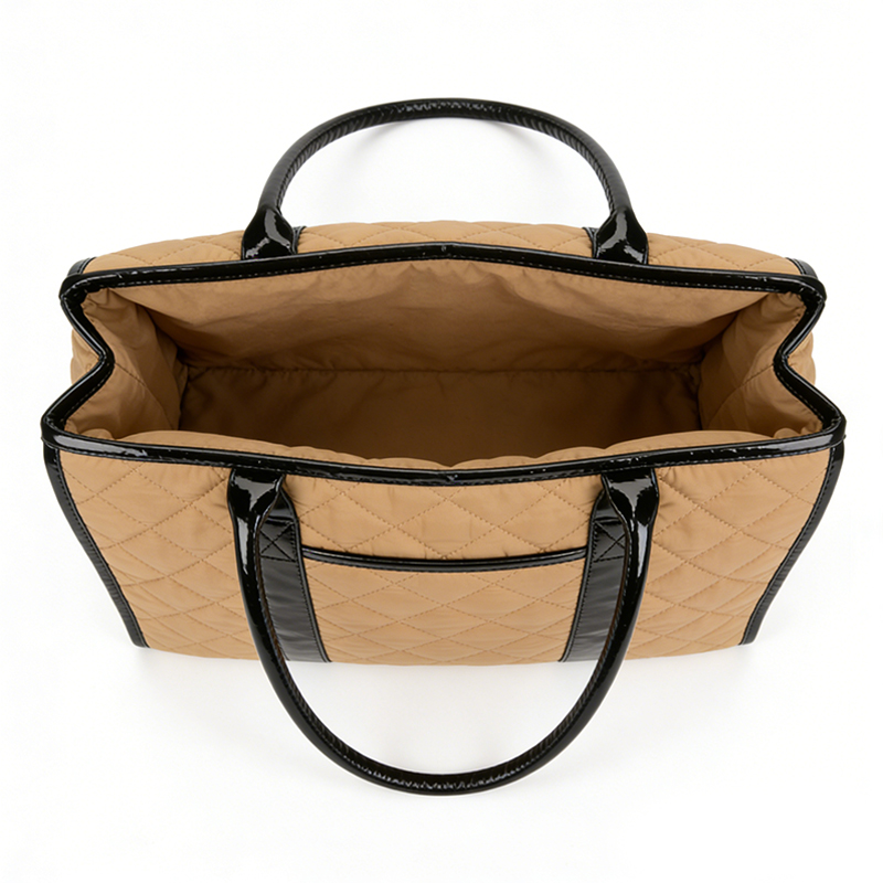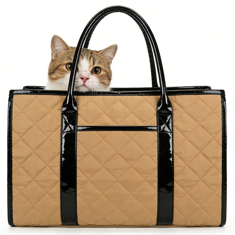 This pet carrier features a sturdy, padded base to ensure your pet’s comfort and safety during travel. Its convenient design, complete with a comfortable handle, makes it easy to carry, combining luxury and practicality, making it ideal for puppies and small pets.