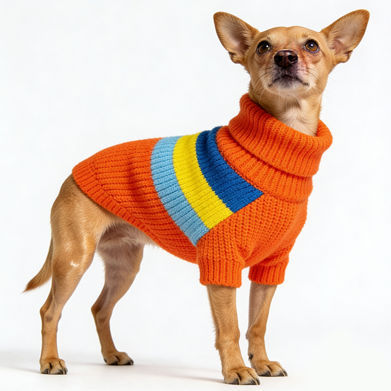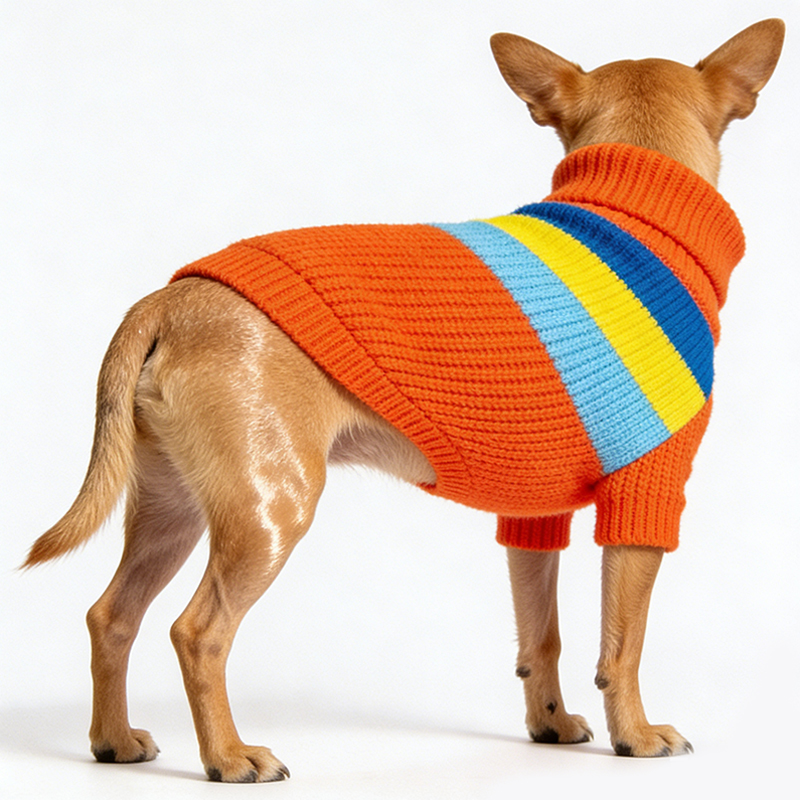 This puppy sweater features a high-neck design that comfortably covers your pet’s neck, chest, and abdomen, providing excellent warmth.