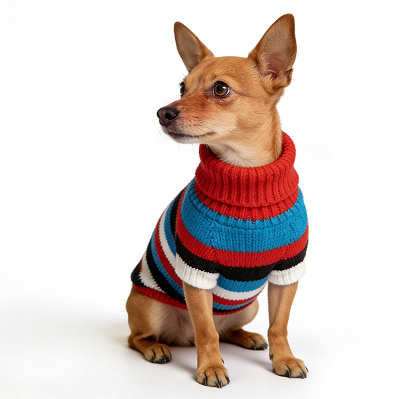 This puppy sweater features a high-neck design that comfortably covers your pet’s neck, chest, and abdomen, providing excellent warmth.